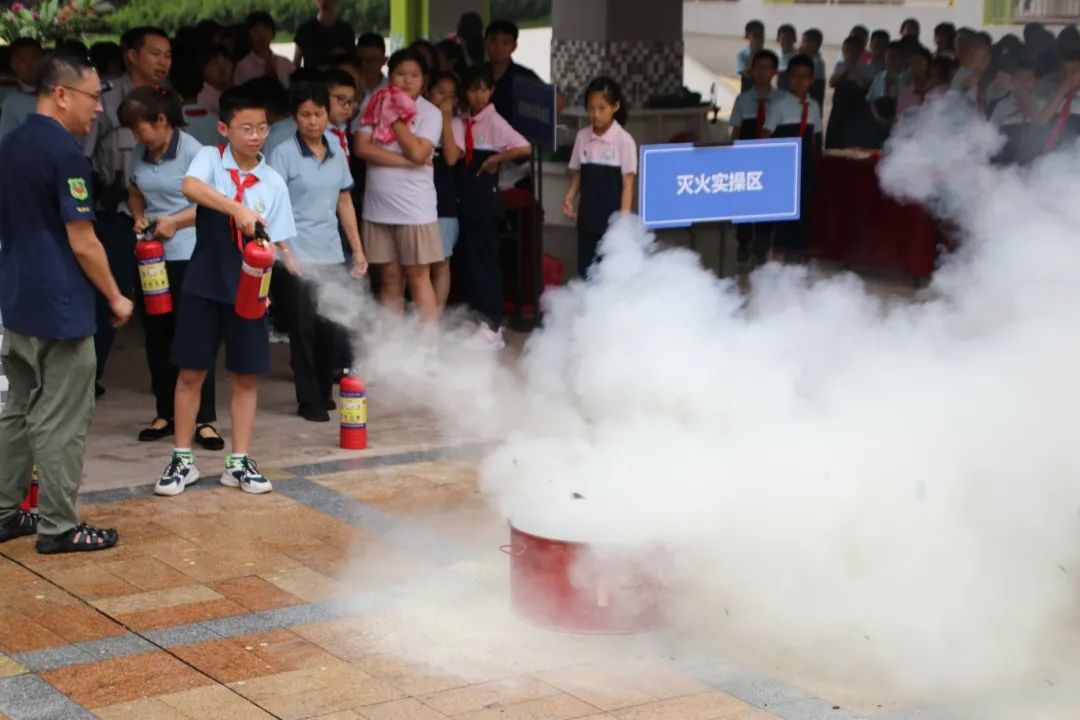消防器材展示区,陈列着各类专业消防设备,讲师细致讲解其用途和使用方法,随后的灭火实操环节,孩子们在讲师指导下成功扑灭模拟火源。
