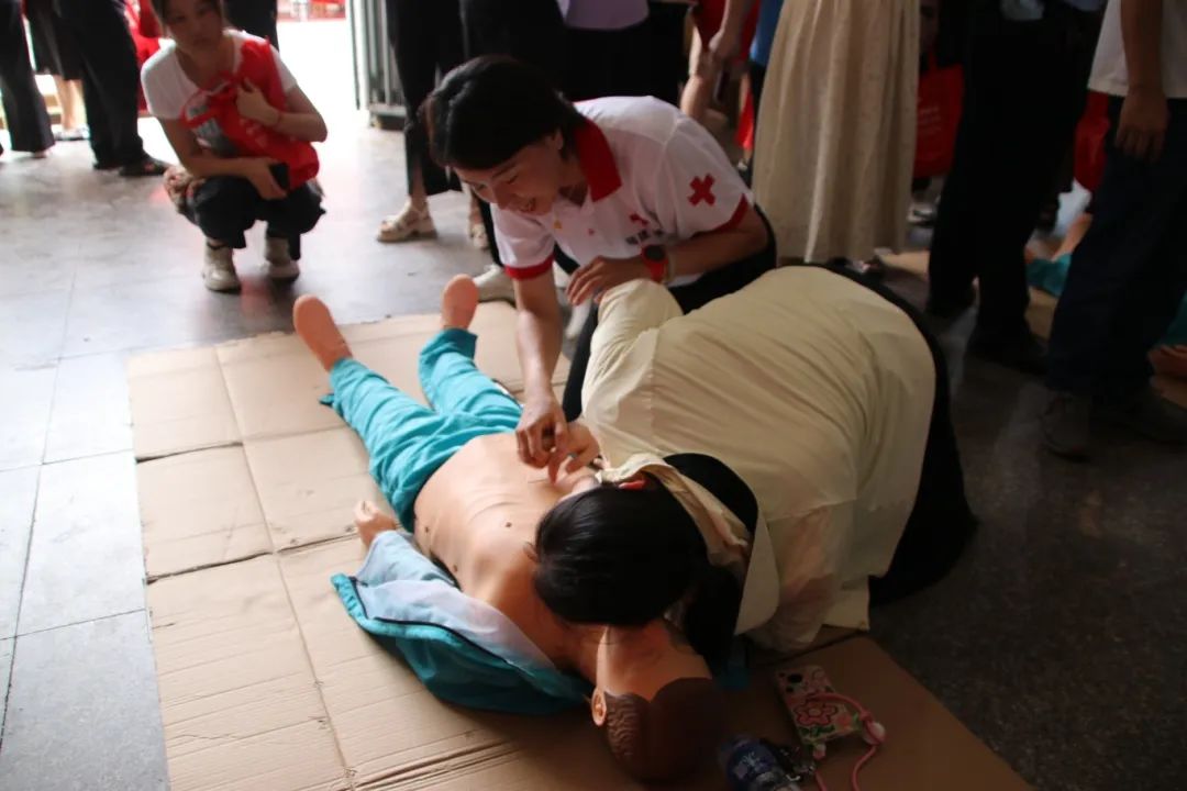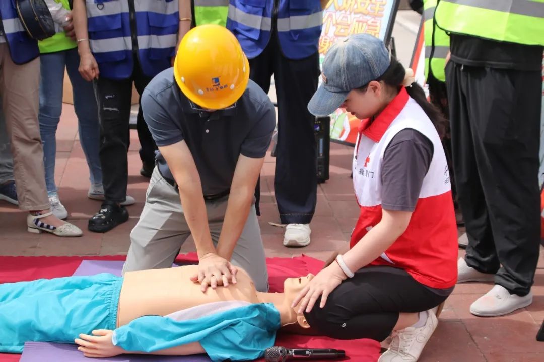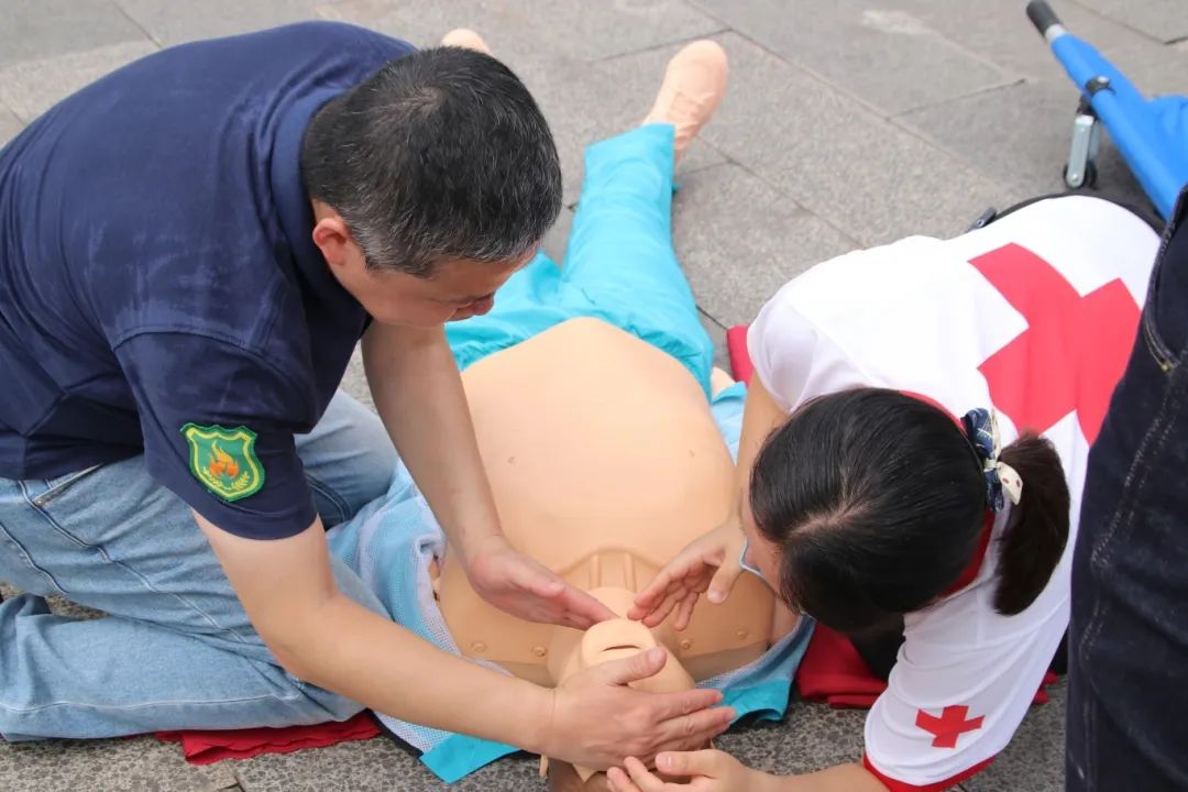 应急救护展示区,专业人员演示心肺复苏等急救技能,讲师们结合消防救援中的急救经验,让孩子们认真模仿,掌握关键时刻的救命本领。