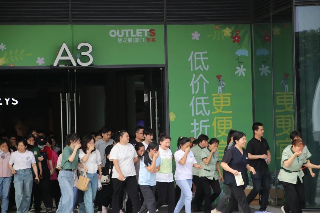 在砂之船(厦门)奥莱,一场紧张有序的消防疏散演练震撼上演!演练开始,模拟商场内突发火情,刺耳的警报声骤然响起。疏散引导组迅速就位,引导人群按照疏散指示标志,沿着逃生通道有序撤离。